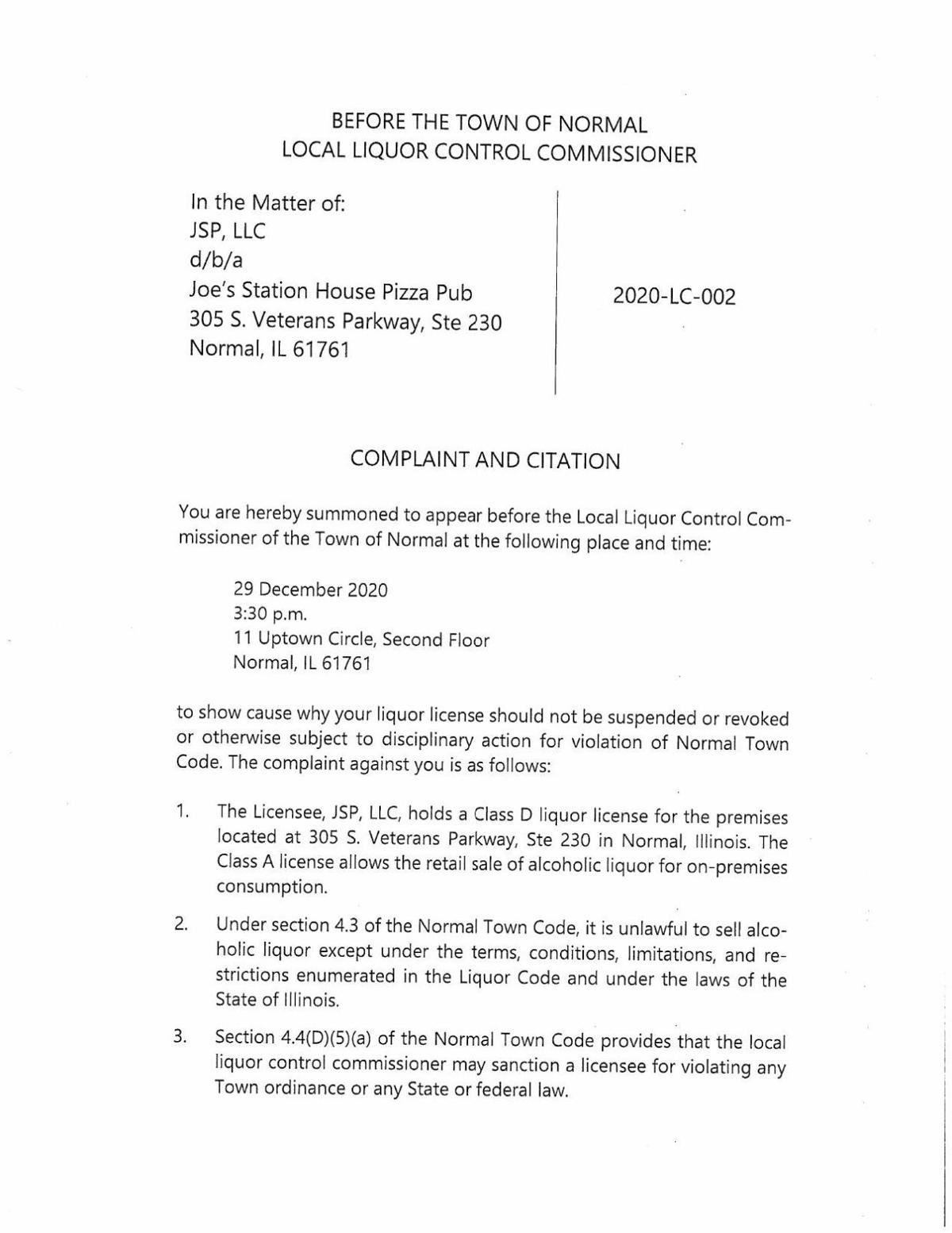 Documents Show What Led To Covid Citations Against Joe S Station House Pizza Pub In Normal Local Herald Review Com